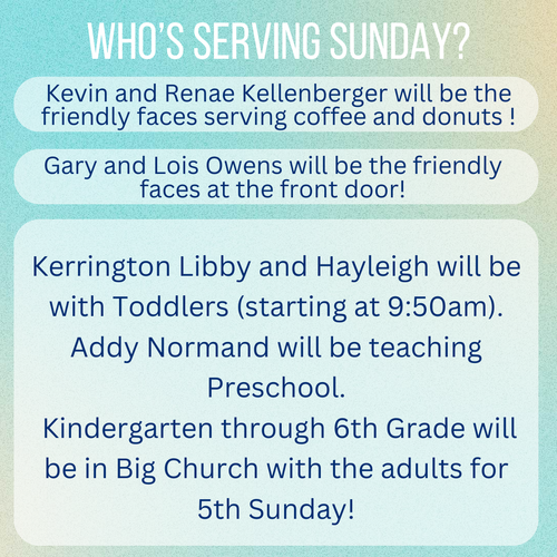There will only be classes for Toddlers and Preschoolers for the 5th Sunday of the month.