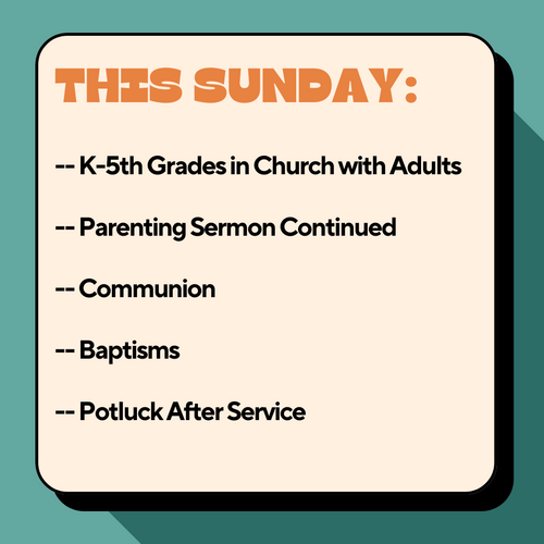 This is a 5th Sunday so K-5th Graders are in Big Church with the Adults! Thank you to all of our amazing volunteers! If you are interested in helping in Canopy Kids rooms, please see Andrea Knutter so she can give you more information!