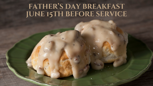 Inviting all fathers to enjoy some biscuits and gravy before service starts on June 15th. It will be ready at 9:30am. Come early to enjoy and we will begin worship at 10am as usual!