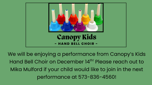 If you or your child(ren) would like to be baptized, please let Pastor Herb know at your earliest convenience at 573-216-2357 or herb@canopy-church.org