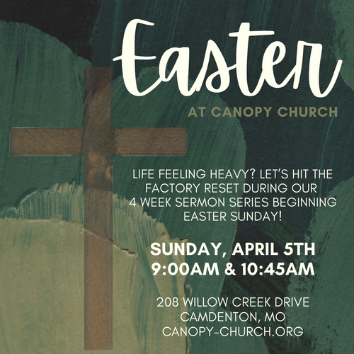 This week, we’re challenging you to save this image and send it to someone as an invite to Easter at Canopy! You never know what someone is carrying and maybe this is the moment they’ve been waiting for. Maybe this is their “fresh start.”